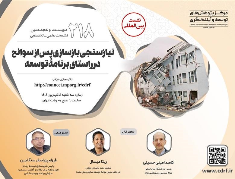 نشست علمی نیاز سنجی بازسازی سوانح در راستای برنامه توسعه ۰۳ شهریور ۱۴۰۴ | ۱۲:۳۷ کد : ۵۴۰۰۰ اطلاعیه ارسال به دیگران نام شما ایمیل شما ایمیل دریافتکننده ارسال انصراف تعداد بازدید:۱۳۹۶ نشست علمی نیاز سنجی بازسازی سوانح در راستای برنامه توسعه، توسط مرکز پژوهش های توسعه و آینده نگری برگزار می گردد.